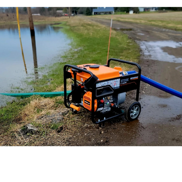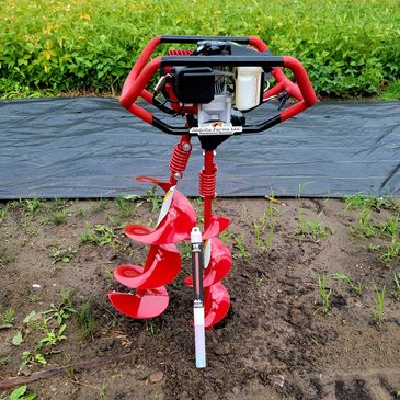 Features: watering tank, vibration dampening handle, wheels for easy transport.
